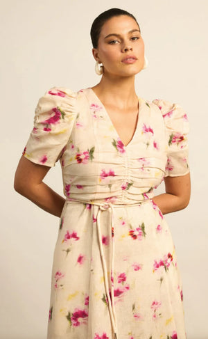The Glimmer Dress by Zoe Kratzmann is a romantic yet refined take on summer event dressing. Featuring delicate gathers through the bust and waist, it creates a flattering silhouette that highlights the figure without feeling fitted. The V neckline and softly puffed sleeves add a feminine touch, while the optional tie belt allows you to define the waist or wear it loose for relaxed elegance. Finished with an invisible back zip for a clean fit, this is a timeless occasion piece you’ll reach for again and again.