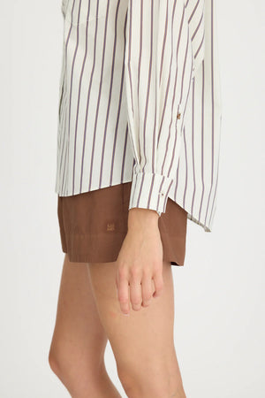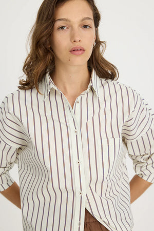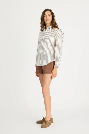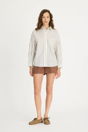 Lightweight and breathable, it layers seamlessly under cozy knitwear on cooler days or pairs effortlessly with our Chiara shorts for an easy summer look. Dress it up or down the Vanilla Stripe brings understated polish to any outfit.