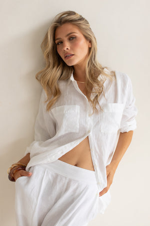 Two Pocket Boyfriend Linen Shirt - White