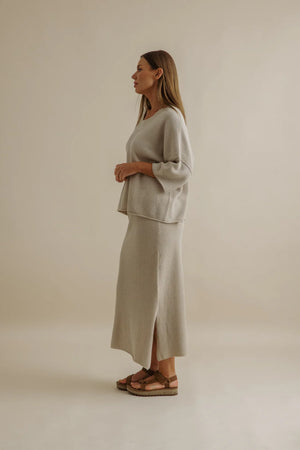 This cotton-knit tee pullover is structured but soft, simple but never boring. Based on the popular Retreat Tee Pullover, the textured knit adds just the right amount of interest, turning a classic silhouette into something a little more special. It’s the kind of piece you reach for when you want to look put together without overthinking it.