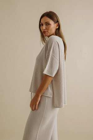 Light and airy with a quiet sophistication, The Nautilus high-twist cotton pullover is designed for effortless elegance. Its pointelle knit creates a delicate pattern of subtle perforations, offering breathability and texture while maintaining a soft, structured drape. The intricate openwork adds depth and visual interest, making it equally suited for layering or wearing on its own. Refined yet relaxed, this pullover transitions seamlessly from casual moments to more polished occasions—a timeless piece that feels as effortless as it looks. Pairs perfectly with the Grace Summer Pant for a comfy coordinated look.