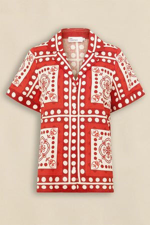 An easy-fitting style defined by a traditional collar, subtle side splits, and porcelain shell buttons for contrast. designed for elevated everyday wear, it’s a piece that travels well and transitions with ease. finished in the distinguished scarf print, inspired by worldwide journeys.