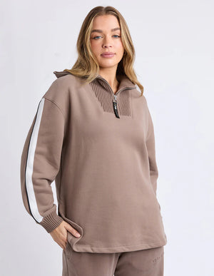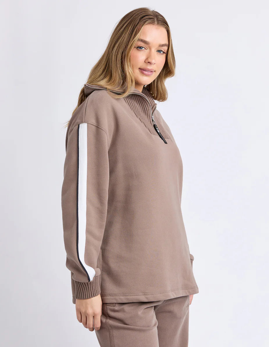 The Knit Collar Crew is a comfortable and fashionable sweatshirt featuring a knitted zip collar and designed with a relaxed fit for effortless wear.