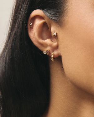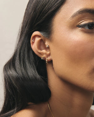The Nadine Studs feature a pink oval and clear marquise cubic zirconia crystal encased in fine gold plating. A delicate and lovely design perfect to pair with your favourite gold sleepers.