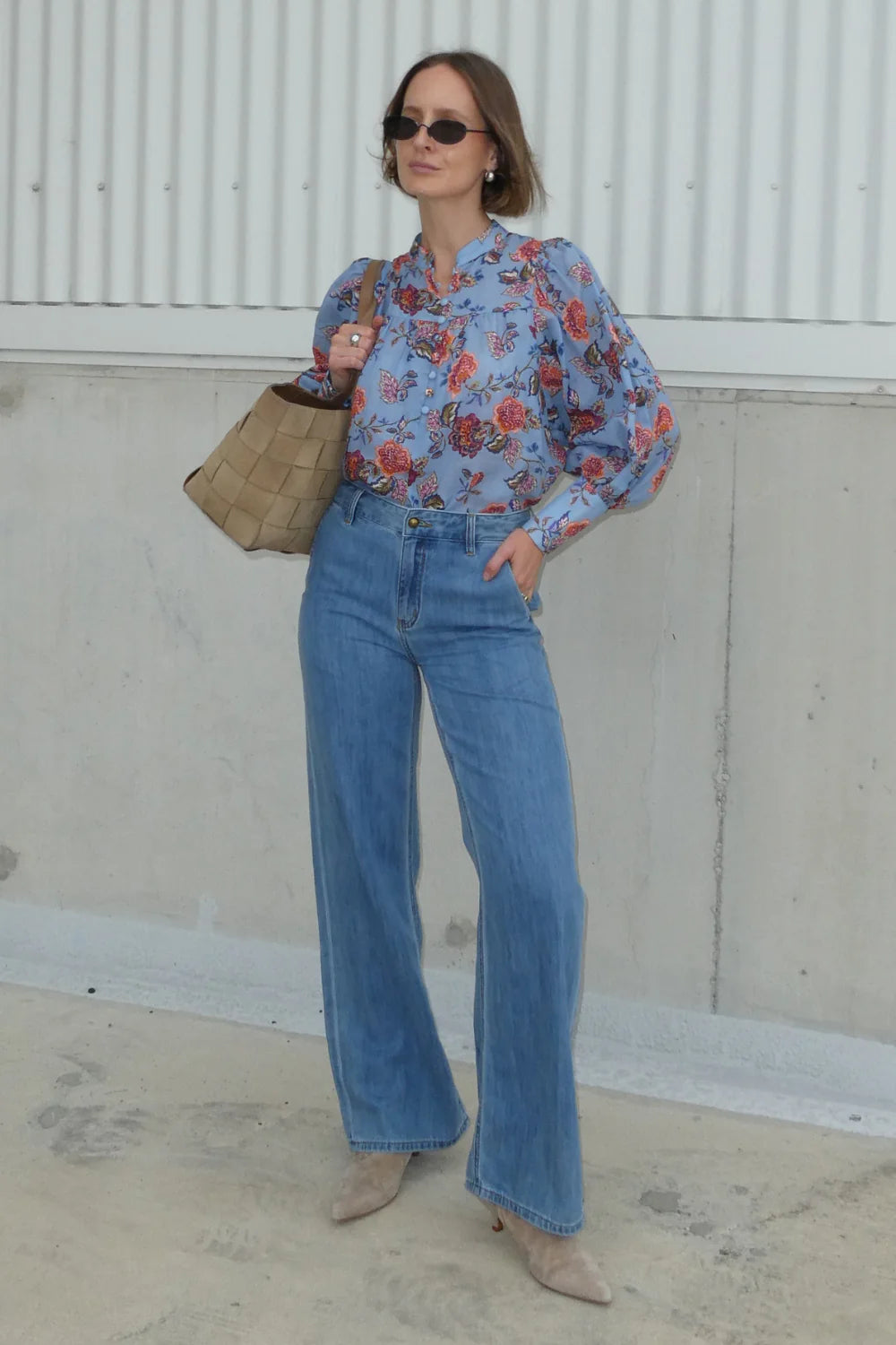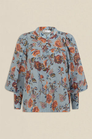 A refined transitional essential. the vista top balances softness and structure for effortless autumn–winter dressing. A cool blue base softened with warm florals, Twilight Bloom feels balanced, feminine, and easy to wear.